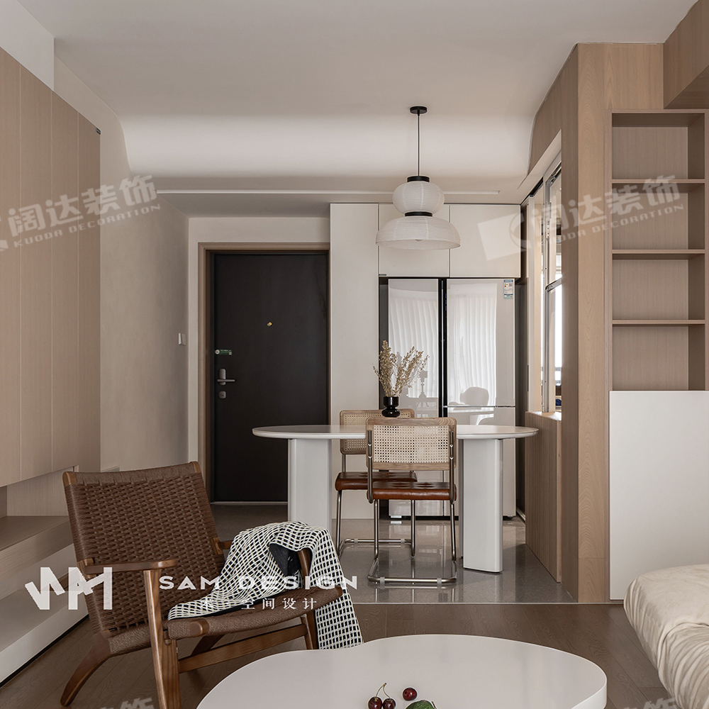 餐廳:餐廳的部分利用頂面吊頂造型,以及后期軟裝配飾的搭配進行區域劃分,不會顯得空間混亂不明確,給人感覺既溫馨又整潔。