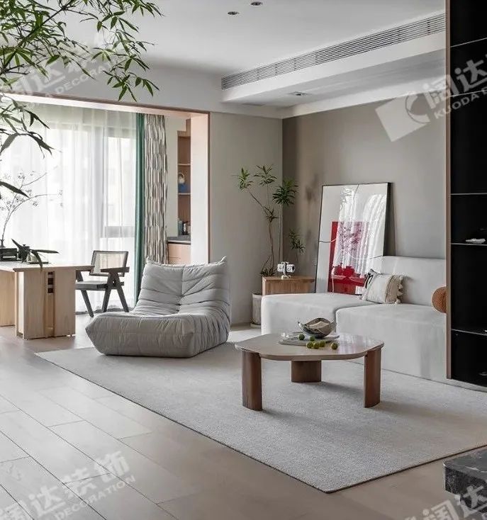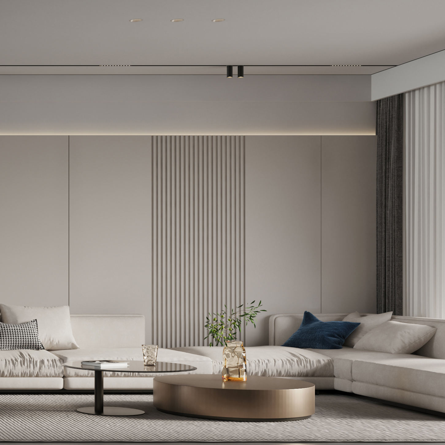 客廳:電視背景墻做一個簡約的線條造型,后期搭配上軟裝配飾,空間更加舒適溫馨。