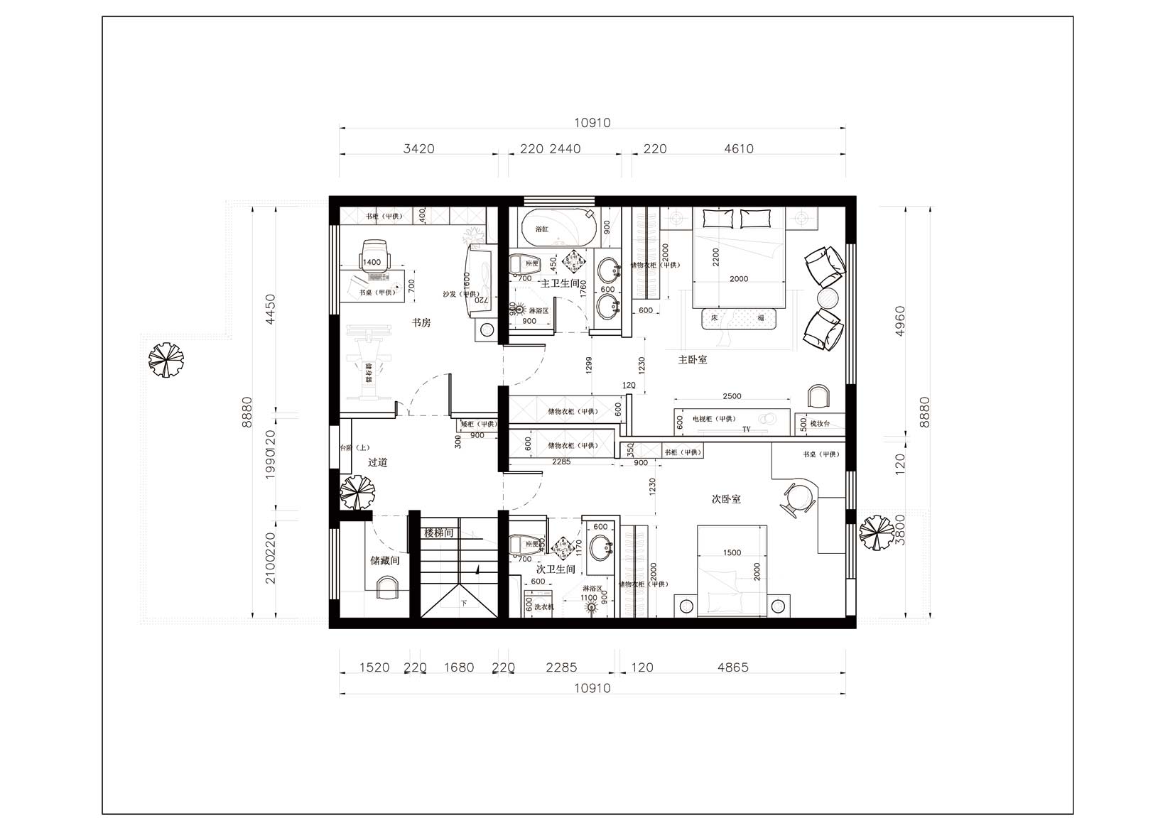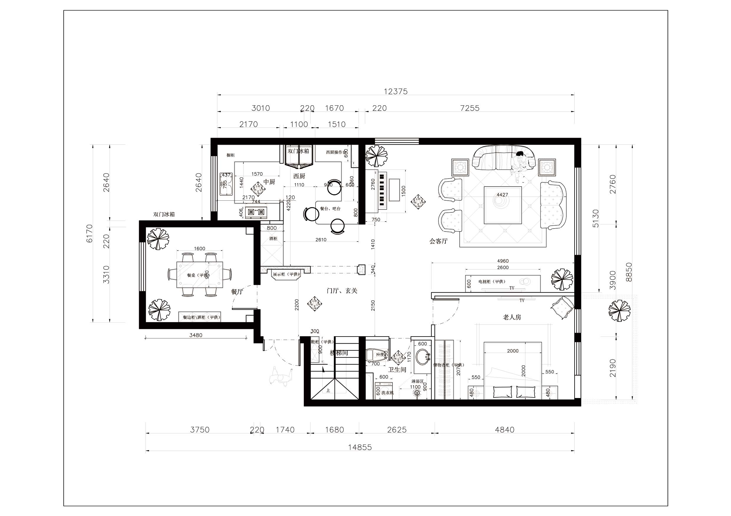 本案例業(yè)主是事業(yè)有成的一家三口,小區(qū)環(huán)境十分優(yōu)美,緊鄰百望山,戶型空間十分敞亮、明快。但此戶型擺在我面前的最大問題是入戶門廳太大,空間浪費明顯、及臥室房間不夠用等。因此在設(shè)計上首先要解決空間布局的問題,首先增加門廳玄關(guān)位置,擴大中西廚面積,其次在一樓增加老人房解決房間較少的問題。