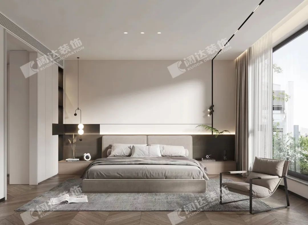 主臥:視覺上的開闊,被光暈染的每個角落,讓人隨心沉浸到自我的空間當(dāng)中,亮色的家具在白色空間內(nèi)恰好起到了點綴的妙用。