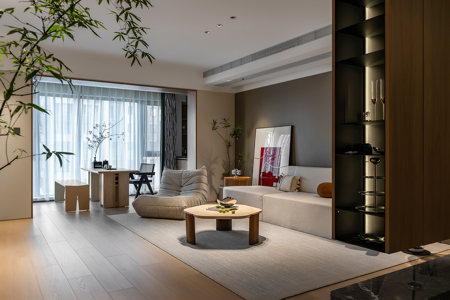 在空間設計上,本案運用了與大自然有聯系的材質,結合了當代產品工藝組合,創造一個都市森林,四季如晨的景象。