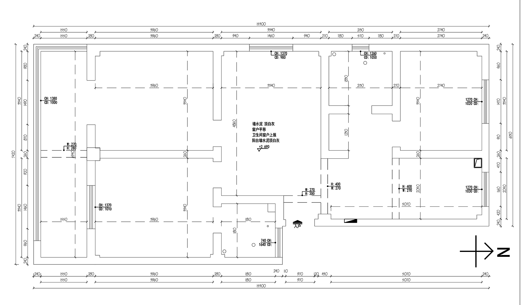 4、拆除北側(cè)臥室正對的墻體(干區(qū)墻體)