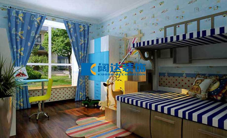 兒童房:以天藍(lán)色的整體色調(diào)和實(shí)木家具的搭配,給孩子營(yíng)造出健康陽(yáng)光的休閑和學(xué)習(xí)空間。