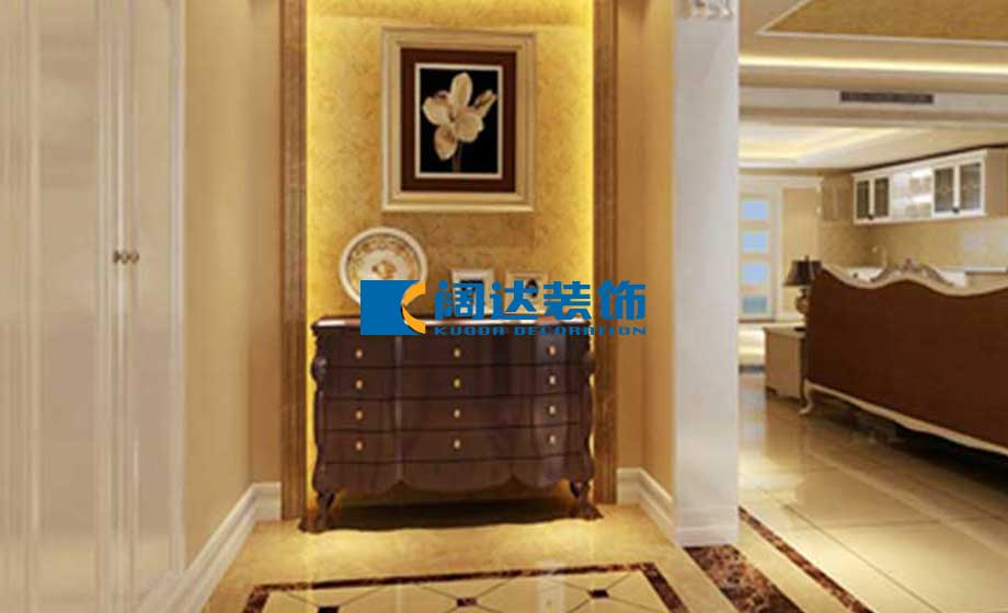 通過(guò)與業(yè)主溝通,了解家庭成員夫妻和兒子居住和使用需求,結(jié)合房屋本身的結(jié)構(gòu)特點(diǎn),入戶(hù)門(mén)正對(duì)客廳,客廳私密性不好,門(mén)廳要大滿足主人實(shí)用功能,還要體現(xiàn)玄關(guān)功能.客廳與餐廳空間沒(méi)有有效劃分,另外廚房中西廚的處理要考慮實(shí)用性和裝飾性。"門(mén)廳做了整體衣帽柜,滿足實(shí)用功能,拆除部分隔墻,增大了客廳及門(mén)廳間的通道,使整個(gè)空間更加開(kāi)闊。造型啞口的設(shè)計(jì),