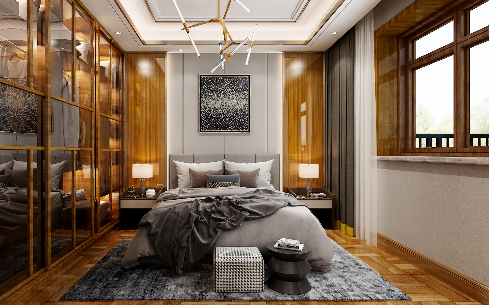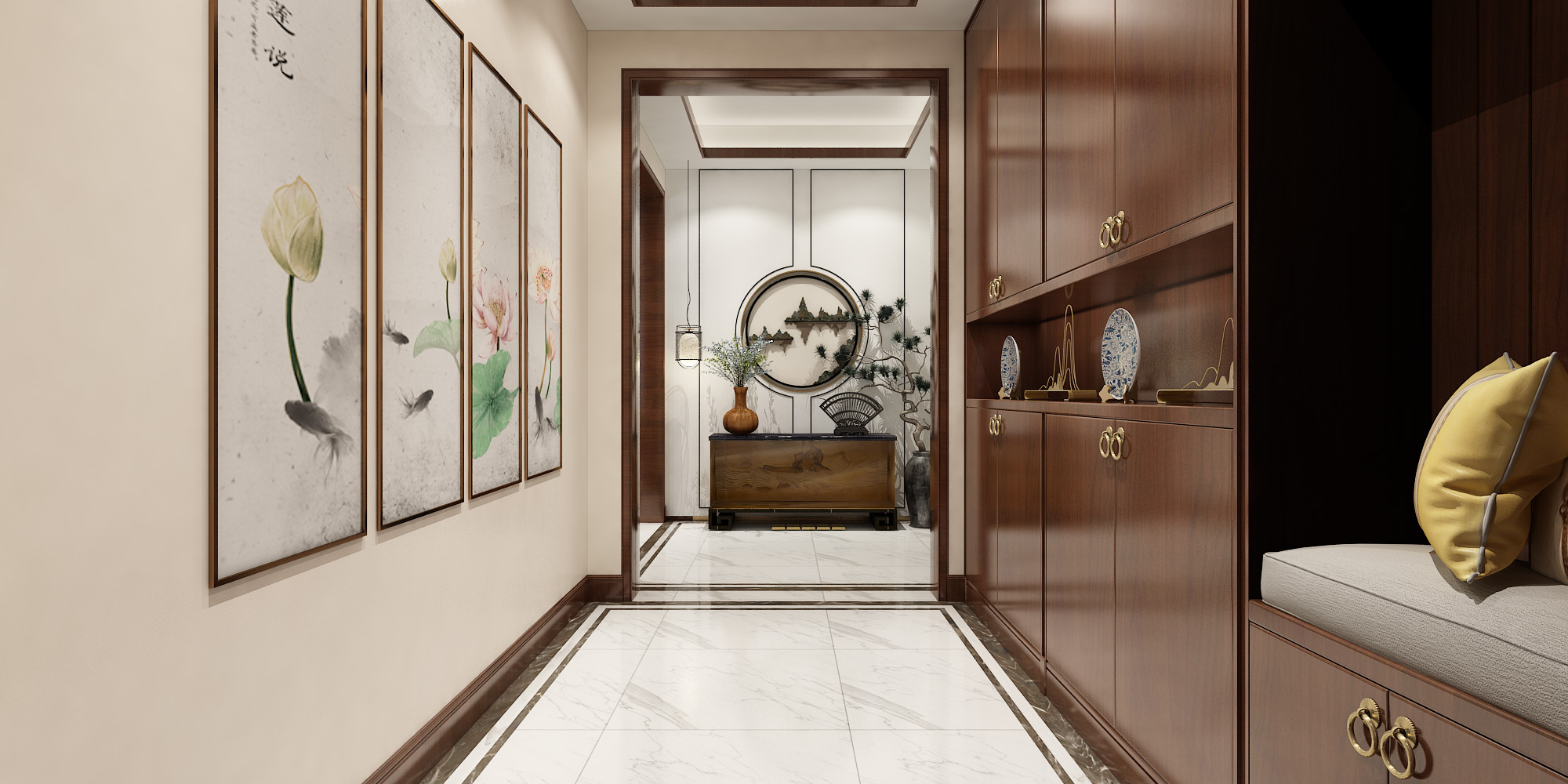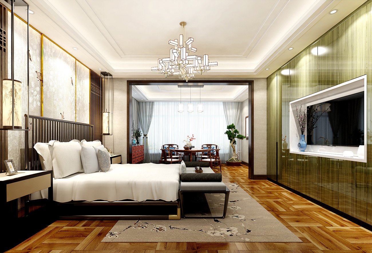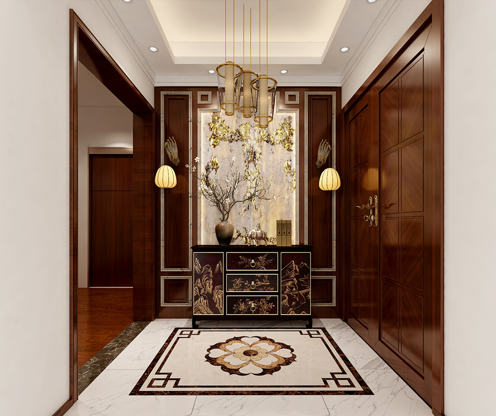 本案的別墅設計采用了新中式的裝飾風格,公共區域是以實木色調的家具和具有中國特色元素的裝飾來打造,有一種悠遠、寧靜的文化韻味。二三層私密空間主要是以現代輕奢的風格,簡約的線條結合色彩更為突出了整個空間的靈動性。