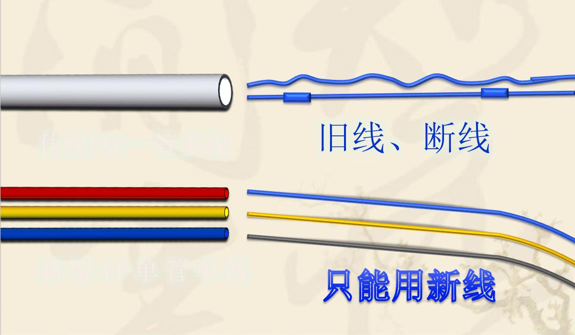 3. 線/管各分為四種顏色,對應相應電線,清楚區別火線、零線、地線、回路線,非專業人員也能識別并維修更換,實實在在保證施工與維修中不會發生接錯的現象,保證用電安全。