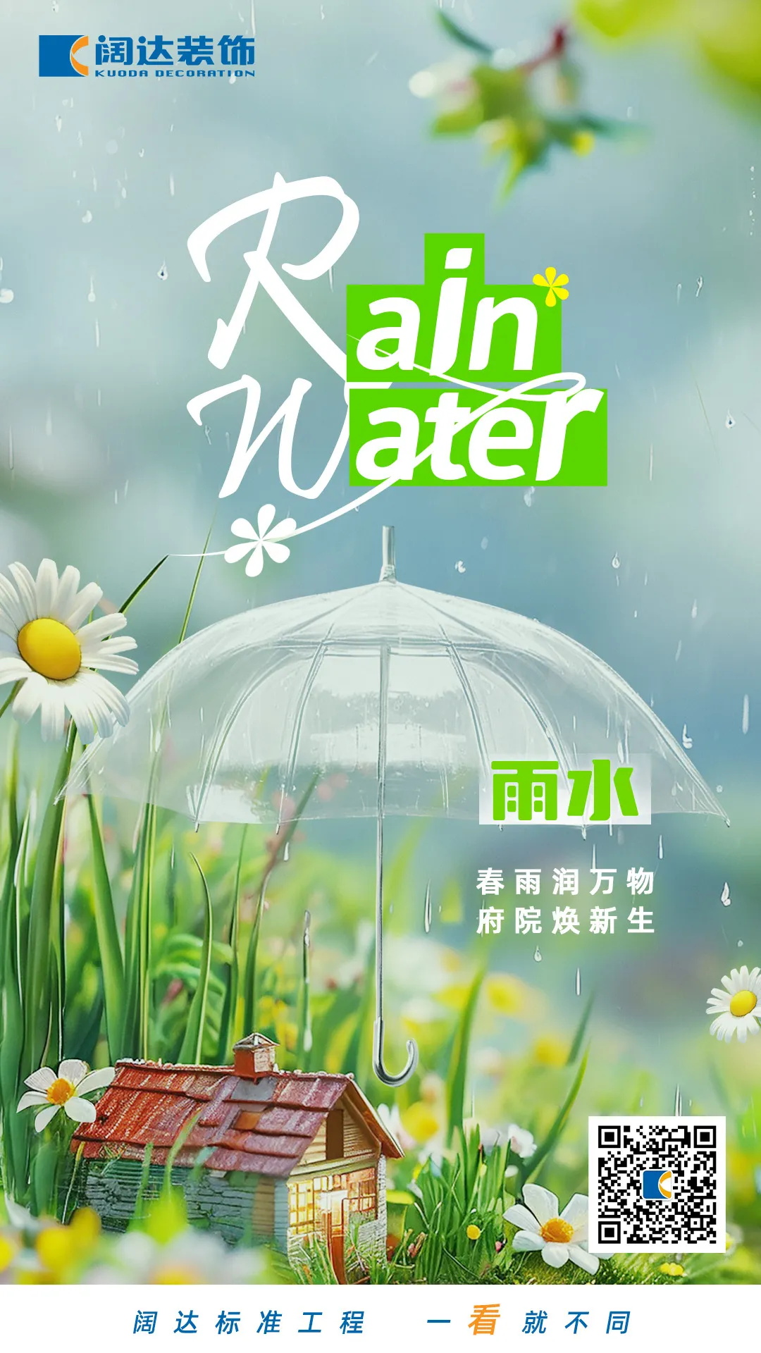 今年雨水正值寒潮來臨,天氣轉冷并伴有降雨,闊達裝飾溫馨提醒您注意關好家中窗戶,給家人添好衣物。待雨過天晴,萬物春歸!